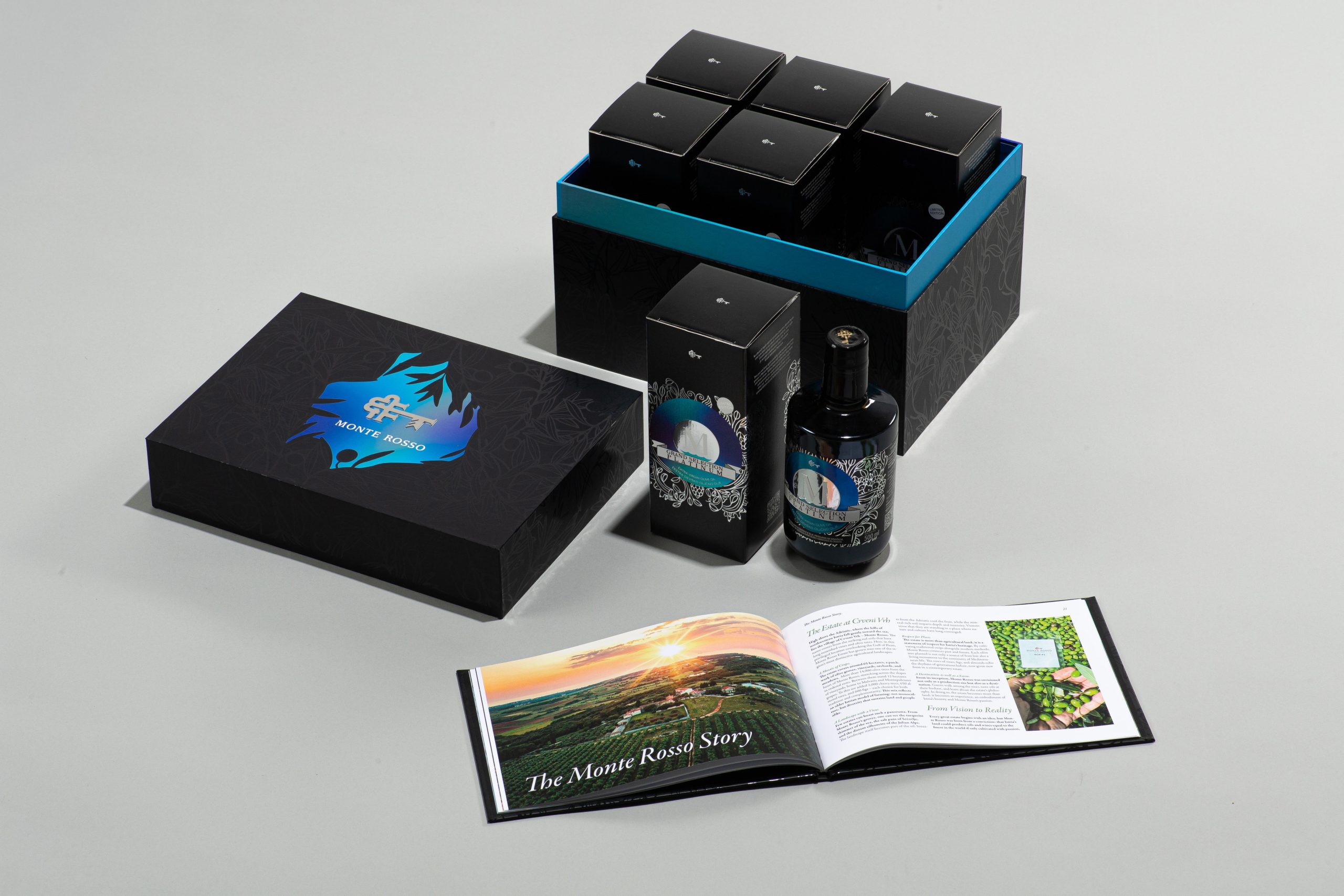6 kos Grand Selection Platinum 0,5 l v darilnih škatlah, zapakirane v luksuzni zunanji škatli, s priloženo knjigo Monterosso.