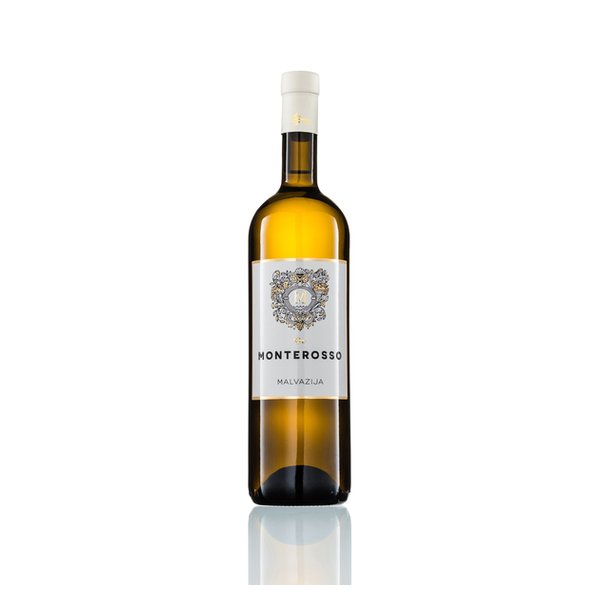 The wine is crystal yellow with a hint of fresh shades of green. The characteristic of Malvasia from the house of Monterosso is a mixture of playful freshness and elegant minerality that permeates the aroma and palette of this light dry wine, made exclusively from Istrian Malvasia. The rich aroma, whose harmony consists of floral notes of acacia, surrounded by citrus notes of nectarine and orange peel, is nicely rounded off with a hint of fresh pear and a hint of mint. The dry wine with a medium body combines the freshness of pure Malvasia with the rich but calm minerality of the Istrian soil into a pleasant and elegant fruit palette that ends with a touch of slightly bitter almonds in the aftertaste. It perfectly complements Mediterranean cuisine, especially white fish and white meat with side dishes of fresh vegetables.